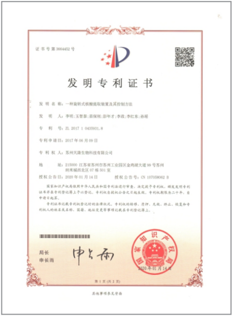 作為國家級(jí)專精特新“小巨人”企業(yè),自主創(chuàng)新基因植根于天隆科技的血液之中。針對(duì)多樣本自動(dòng)化提取易污染問題,我們創(chuàng)新研發(fā)旋轉(zhuǎn)混勻提取技術(shù),并獲發(fā)明專利授權(quán)(專利號(hào):ZL201710435931.8),結(jié)合負(fù)壓HEPA空氣過濾、紫外消毒、液滴捕捉、實(shí)驗(yàn)分區(qū)等措施,極大降低污染風(fēng)險(xiǎn),確保核酸提取質(zhì)量,有效保障操作人員及環(huán)境安全。除此之外,掃碼槍自動(dòng)識(shí)別程序、wifi遠(yuǎn)程操控、全彩觸屏操作、單條預(yù)封裝試劑等創(chuàng)新設(shè)計(jì)......我們堅(jiān)持致力于產(chǎn)品標(biāo)準(zhǔn)和質(zhì)量的不斷升級(jí),同時(shí)期待為基因檢測和分子診斷行業(yè)的高質(zhì)量發(fā)展賦予更多可能。