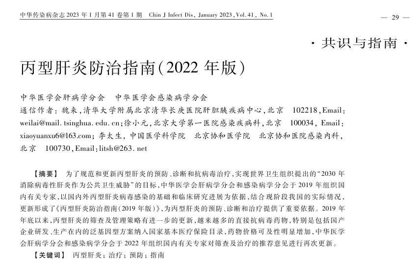 [2] 中華醫(yī)學會肝病學分會, 中華醫(yī)學會感染病學分會. 丙型肝炎防治指南(2022年版)[J]. 中華傳染病雜志2023, 41(1): 29-46.