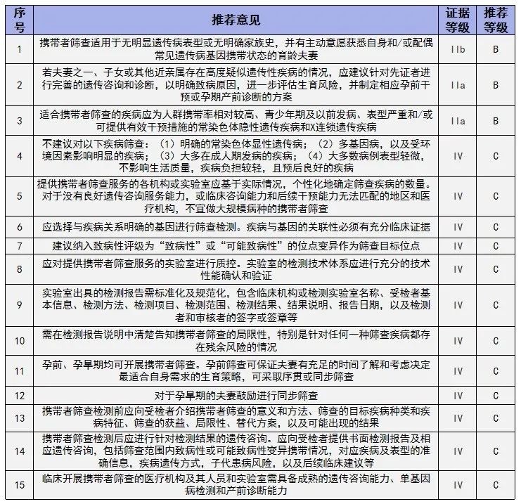 參照國際相關(guān)指南及共識(shí),數(shù)十位專家學(xué)者經(jīng)充分探討,審慎編寫及多次修改,針對(duì)孕前及孕早期常見隱性單基因遺傳病的攜帶者篩查,最終形成如下15條核心意見。